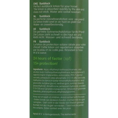 • SPF 15 Equi Sunblock Lotion geeft bescherming volledige dag.