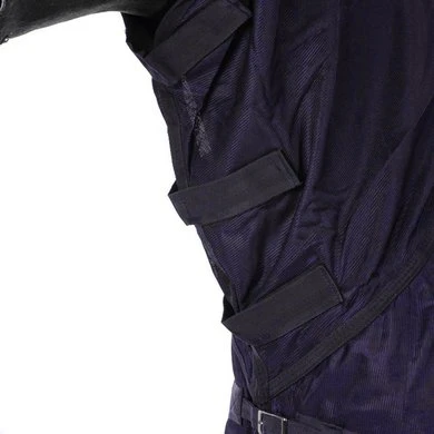 Robuuste vliegendeken die een optimale bescherming biedt tegen vliegen. Bescherming voor het hele lichaam (hoofd, nek, buik, enz). De borstriem met nek aan hoofdverbinding zijn voorzien van stevige klittebandsluiting.