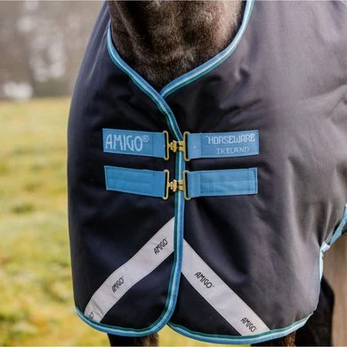 De Amigo Bravo 12 Original Turnout is een 50 grams outdoordeken met een waterdichte en ademende 1200D polyester buitenstof en een polyester glansvoering. De deken is voorzien van het Horseware Liner System, waardoor je diverse Horseware Liners en halsstukken aan de deken kunt bevestigen. De deken is voorzien van voorbeenuitsparingen voor een goede pasvorm en een dubbele haak/oogsluiting op de borst. Daarnaast heeft de deken kruissingels onder de buik, een afneembaar bilkoord en een staartflap. Bij deze deken is een losse hals verkrijgbaar.