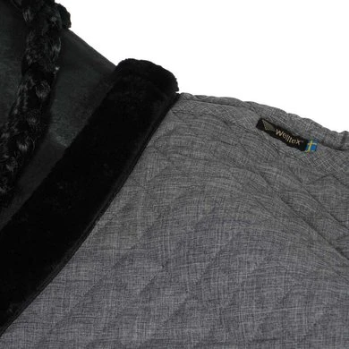 De Haze Horse Rug is een lichtgewicht deken in quiltstof leverbaar in melange bruin en melange grijs. Een blikvanger tussen alle andere dekens, door het luxe koord en leather-look badge met Back on Track® logo. De deken is volledig gevoerd in Welltex® wafeldoek. Verder heeft de deken een ademende 200 grams vulling met hoog vocht absorberend vermogen. Bij de schoft is de Haze Horse Rug voorzien van imitatie bont. Aan de voorkant zien we de T-bar sluiting. Verder heeft de deken een verborgen singel.