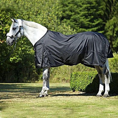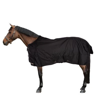De waterdichte regendeken 1680D is uitgerust met sterke dubbele borstsluiting, een schoftbeschermer van fleece, loopsplitten, staartflap en koord en bevestigingsogen voor bilkoorden. kruissingels, loopsplitten en een dubbele verstelbare sluiting aan de voorzijde. Deze deken is ideaal voor gebruik bij slechte weersomstandigheden. De buitenzijde is gemaakt van duurzaam 1680 denier ballistic nylon. De deken is gevoerd en heeft geen vulling, dus ook goed over een andere deken te gebruiken. Paarden gaan niet overmatig transpireren onder een Back on Track deken. Verkrijgbaar in zwart in de maten 125-165cm