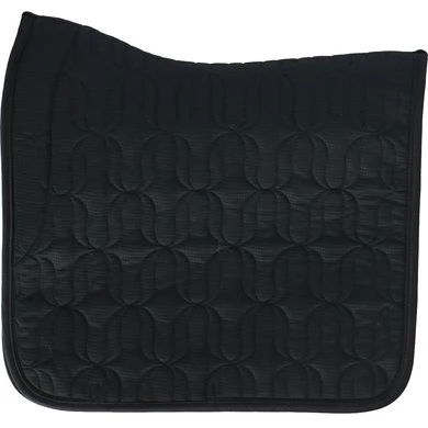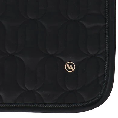 Deep Nights Zadeldekje Dressuur is een verfijnde aanvulling op onze zeer gewaardeerde Nights Collectie, het zadeldekje is verkrijgbaar in het gitzwart en is prachtig afgewerkt met een zwarte bies en zwart-op-zwart borduurwerk. Het Back on Track logo is uitgevoerd in het Rose goud waarmee het zadeldekje een elegante uitstraling heeft.