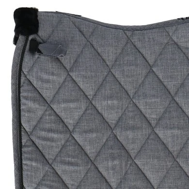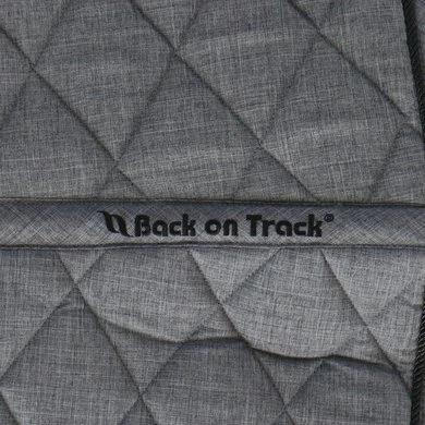 Het Haze Collection zadeldekje is uitgevoerd in melange bruin en melange grijs, zeer goed te combineren met andere producten in de Haze Collectie. Het Back on Track® nr I zadeldek heeft model gestaan voor de Haze zadeldek. Een extra hoge kamer voor optimale bewegingsvrijheid bij de schoft. Afgebiesd met koord en een leather-look badge aan de linker zijde met het Back on Track® logo in brushed metal. Kunstbont bij de schoft en uitgevoerd met D ring-straps voor bevestiging aan het zadel. Voordeel hiervan is dan er geen drukpunten ontstaan op de schouder die bij traditionele zadeldekken wel kunnen ontstaan. Het sjabrak heeft een vocht doorlatende- en schokabsorberende polyfill vulling.