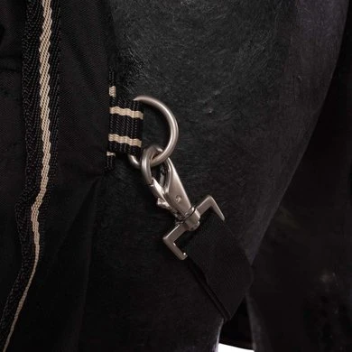 BR katoenen deken Classic Deze anatomisch gevormde deken is vervaardigd van sterk polykatoen (65% katoen, 35% polyester). Bij de borst is de deken verstevigd met een extra laag polykatoen. De deken is voorzien van een verstelbare, dubbele borstsluiting met quick release clips en klittenband. Daarnaast heeft de deken een dubbelgestikte rugnaad met een bies en een fleece schoftbeschermer. De buiksingel is extra verstevigd dankzij de Pu patch van synthetisch leder. Verder is de deken voorzien van loopsplitten