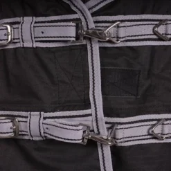 Deze waterdichte veulendeken met getapete naden is vervaardigd van 1200D polyester. De deken heeft een voering van 190T nylon en een vulling van 340 g polyfill. Waterdicht: 5000 mm, ademend: 4000 g/m² 24 uur en winddicht. De deken kan zowel in de lengte als in de breedte versteld worden met extra lange klittenbandsluitingen. Dat maakt hem ideaal voor snelgroeiende veulens! De anatomisch gevormde deken heeft een dubbelgestikte rugnaad en sluit op de borst met een lange klittenbandsluiting voor een goede pasvorm. Daarnaast is de veulendeken voorzien van een gewatteerde dekensingel met een lange klittenbandsluiting en elastiek. Die deken heeft een afneembaar staartkoord en is voorzien van zinken fournituren met een aluminium finish.