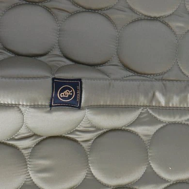 Het polyester-satijnen zadeldek Satin Dream heeft een sierlijke ronde stepping en is afgewerkt met een tweekleurige koordbies, een rij steentjes en een contrastbies. Een evenredige vulling van 300 gram polyfill en 10 mm foam zorgt voor een evenredige drukverdeling en de Coolplusvoering zorgt voor een goede vochtregulering.