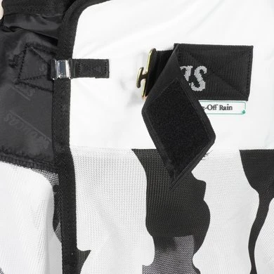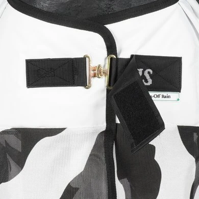 De Buzz-Off Rain is een gecombineerde regen-/vliegendeken. Een perfecte deken voor als warme en natte dagen elkaar afwisselen. De eigenschappen van de Buzz-Off vliegendekens en Sun Shower dekens zijn gecombineerd om de Buzz-Off Rain te creëren. Het bovenste gedeelte van de Buzz-Off Rain is waterproof en ademend, terwijl het onderste gedeelte is gemaakt van hetzelfde materiaal als de Buzz-Off vliegendeken. Er ontstaat dan een lichtgewicht, waterproof deken met UV-bescherming. De staartflap geeft extra bescherming aan de staart. De schouderplooien zorgen voor extra ruimte voor de schouders en de gladde voering bij de schouders is ter voorkoming van schuurplekken. De deken heeft een T-haak borstsluiting met klittenband en is voorzien van een elastische en verwijderbare buikflap die ervoor zorgt dat de deken op zijn plek blijft liggen en de buik optimaal beschermt is tegen insecten en vliegen. De deken heeft een bilkoord en een staartflap. Er zijn bevestigingspunten aanwezig voor bilriemen (niet meegeleverd).