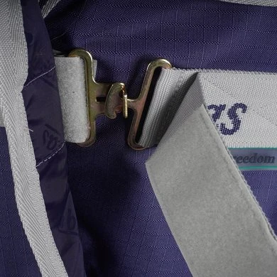 De Freedom Turnout heeft een 600 Denier rip-stop buitenstof en is verkrijgbaar in meerdere varianten. De buitenstof is van waterproof en ademend polyester en de binnenkant is van ademend nylon. De deken heeft een erg stevige voorsluiting (Click ’n Go) van 2 haken die je moet verbinden. Deze kun je dan weer verbergen en beschermen door middel van de overlappende flap met klittenband. Door de verstelbare kruissingels kun je deze makkelijk aanpassen aan de correcte maat van je paard. De deken beschikt aan de achterkant over een bilkoord, deze bilkoord is genoeg om de deken op de goede plek te houden. Mocht je toch een paar bilriemen aan de deken hebben, dan zitten hier bevestigingspunten voor, echter worden deze niet meegeleverd.