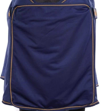Deze is eenvoudig te bevestigen met twee klittenbandsluitingen. De deken kan ook gebruikt worden zonder de afneembare voorkant. Door de schouderplooien, bekleed met een zijden voering, heeft het paard veel schoudervrijheid. De T-haak voorsluiting en de bilkoorden houden de deken goed op zijn plaats. Deze deken heeft geen buiksingels.