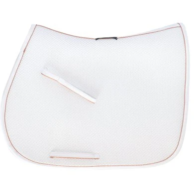 Het 3D spacer materiaal bestaat uit polyester vezels die in horizontale en verticale richting geweven zijn. Hierdoor is het materiaal duurzaam, veerkrachtig en lichtgewicht. Door de twee richtingen waarin de vezels geweven zijn ontstaat een open structuur die zeer veerkrachtig is. Daardoor biedt het goede drukverdeling en schokdemping. Een voordeel voor zowel ruiter als paard! Het materiaal vormt zich naar de rug van het paard, maar veert terug in de originele staat wanneer er geen druk wordt uitgeoefend. Het dekje zal dus geen afdruk van het zadel krijgen en de bewegingen van het paard worden goed ondersteund. De binnenste laag van het dekje dat tegen het paard aan ligt is van zachte vezels, waardoor het comfortabel is voor het paard. De buitenste laag is wat stugger waardoor het dekje goed in vorm blijft en de ruiter ondersteund wordt.