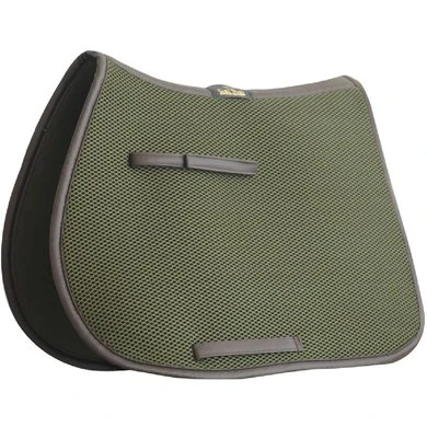 Het 3D spacer materiaal bestaat uit polyester vezels die in horizontale en verticale richting geweven zijn. Hierdoor is het materiaal duurzaam, veerkrachtig en lichtgewicht. Door de twee richtingen waarin de vezels geweven zijn ontstaat een open structuur die zeer veerkrachtig is. Daardoor biedt het goede drukverdeling en schokdemping. Een voordeel voor zowel ruiter als paard! Het materiaal vormt zich naar de rug van het paard, maar veert terug in de originele staat wanneer er geen druk wordt uitgeoefend. Het dekje zal dus geen afdruk van het zadel krijgen en de bewegingen van het paard worden goed ondersteund. De binnenste laag van het dekje dat tegen het paard aan ligt is van zachte vezels, waardoor het comfortabel is voor het paard. De buitenste laag is wat stugger waardoor het dekje goed in vorm blijft en de ruiter ondersteund wordt.