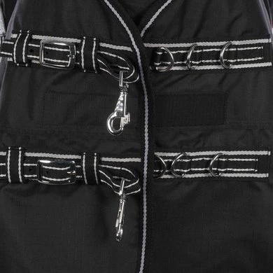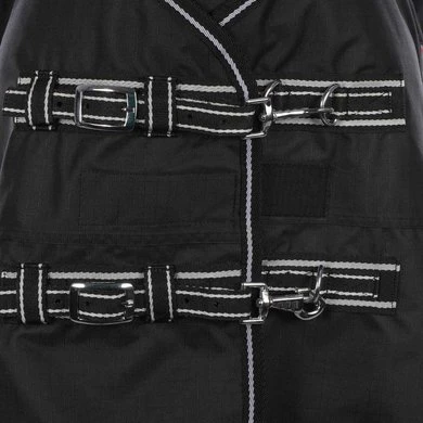 Waterdicht en ademend buitendeken van 600D ripstop. Perfecte pasvorm, getapete stiksels en sterke katoenen voering. De deken heeft een verstelbare dubbele voorsluiting met cliphaken en D-ringen, schoudervouw, dwarssingel, elastische bilkoorden en staartflap. Ademend vermogen: 3000mvp. Waterdruk: 3000 mm.