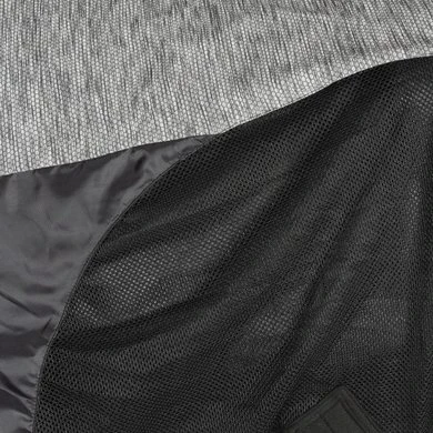 The main muscle parts of the horse’s back are covered by the Hybrid fabric with Graphene print. The graphene makes the fabric thermoregulating, so the heat from the horse’s body is equally distributed all over the fabric surface to avoid cold spots or overheating. The fabric is also very breathable and allows excess heat to escape, it is anti-static. The Graphene print is made of carbon fragments that direct energy and the static is led away from the horse/coat. The lower part of the rug is a light mesh fabric.