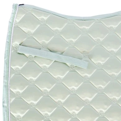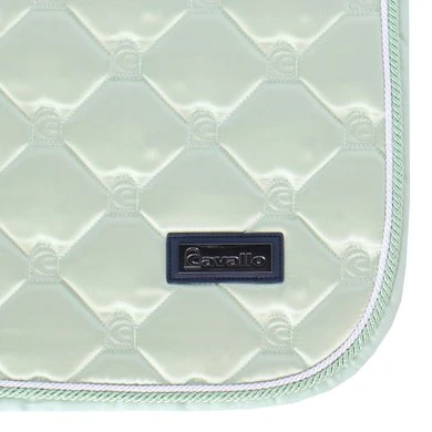 Een edel, veelzijdig zadeldek van hoogwaardig, licht glanzend bovenmateriaal. Uitgebreid ruitvormig quiltpatroon met geïntegreerd Cavallo-logo. Een klein, exclusief Cavallo-label in gunmetal-optiek. Het mat zilveren koord geeft het zadeldek een nobele uitstraling. De sneldrogende en vochtafvoerende netvoering is bijzonder huidvriendelijk