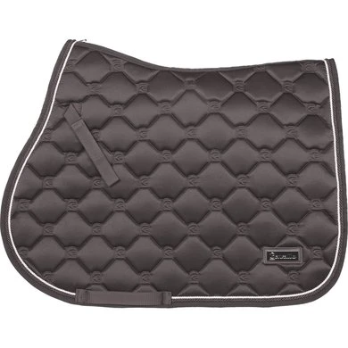 Een nobel, veelzijdig zadeldek van hoogwaardig, licht glanzend bovenmateriaal. Uitgebreid ruitpatroon met geïntegreerd Cavallo-logo. Een klein, exclusief Cavallo-label in gunmetal-optiek. Het matzilveren koord geeft het zadeldek een edele uitstraling. De sneldrogende en vochttransporterende mesh-voering is bijzonder huidvriendelijk en o
