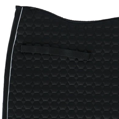 Zadeldek met allover stiksel in honingraatlook. Een zilveren bies omlijst het zadeldek.