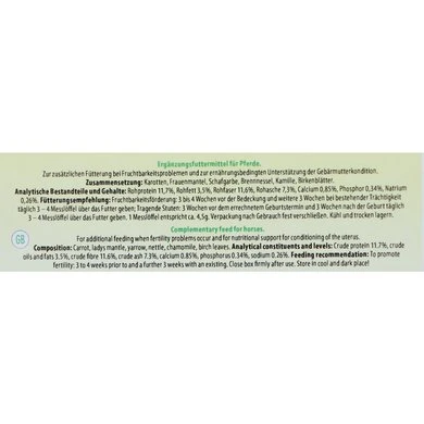 EquiGreen FokmerrieMix is ontwikkeld om de vruchtbaarheid van de merrie voedingsgerelateerd te ondertsteunen. Dit speciale mengsel kan de doorbloeding van de baarmoeder bevorderen, hun spieren versterken en daarmee het verloop van de dracht en de aansluitende geboorte van de merrie ontlasten. EquiGreen FokmerrieMix compenseert in de laatste weken van de dracht en de eerste fase van lactatie, voedings gerelateerde onevenwichtigheden en stimuleerdt de stofwisseling, omdat deze kruiden op bijna alle weilanden ontbreken.