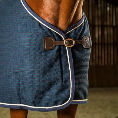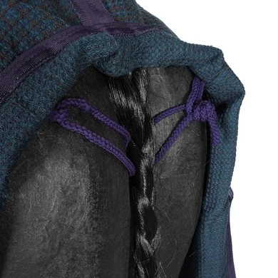 • Gesloten op de borst met een messing gesp en doorgestikte leren sluitingen
