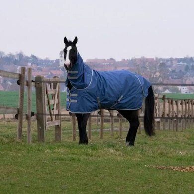 In waterdichte en ademende 600 deniers ripstop gerecyclede polyester, gevoerd met anti-statisch en anti-schurend nylon. Sluit door middel van dubbele klittenbanden op elastische basis. Kan aan de deken worden vastgemaakt met 3 elastische banden met een centrale musketon met 2 klittenbanden aan de zijkanten.