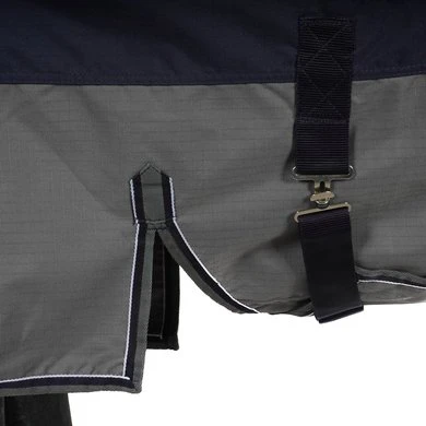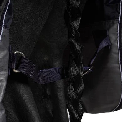 Waterdicht en ademende 300 grams deken in 600 denier ripstop polyester met getapete naden. Buikflap met 3 lage bevestigingsbanden en nylon voering. Beschikt over een zeer grote waterdichte staartflap, synthetische schapenvachtvulling op de schoft, lage kruissingels en een verstelbare achterriem. Snelsluiting op de borst, versterkt met klittenband banden.