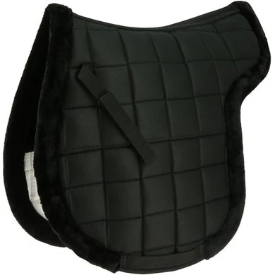 Zadelvormig polyester en katoenen pad (polyester bovenkant en katoenen onderkant), 300 g / m² polyfill en 10 mm schuimvulling. Mesh-stof over de rug voor een betere luchtstroom, klittenband en singellussen. Synthetische schapenvacht over de rug van het paard en aan de randen voor extra comfort. Voor dagelijks gebruik.