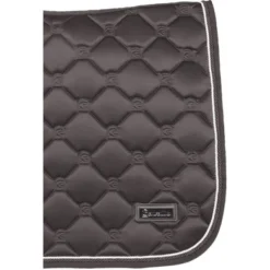Sjabrak van glanzend satijn polyester met 200 g / m2 polyfill en 10 mm schuimvulling met honingraatkatoen voering. Klittenband en singellussen. Versierd met een decoratieve band van zwarte glitter.