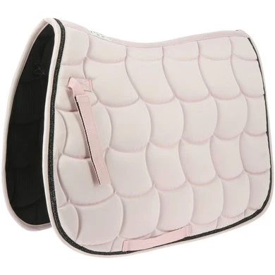 Sjabrak van glanzend satijn polyester met 200 g / m2 polyfill en 10 mm schuimvulling met honingraatkatoen voering. Klittenband en singellussen. Versierd met een decoratieve band van zwarte glitter.