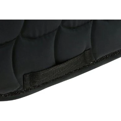 Sjabrak van glanzend satijn polyester met 200 g / m2 polyfill en 10 mm schuimvulling met honingraatkatoen voering. Klittenband en singellussen. Versierd met een decoratieve band van zwarte glitter.