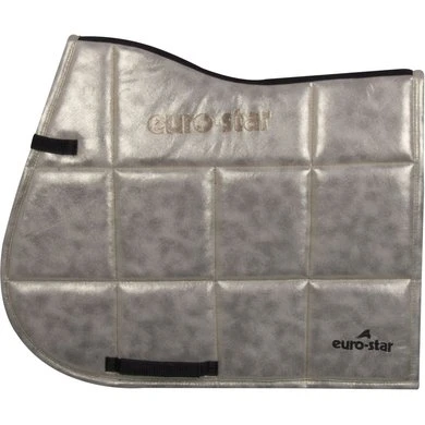 Zadeldek van glitterstof met stevige bindingen en grote vierkante stiksels. Siliconen euro-star tekst zorgt ervoor dat het zadeldek niet verschuift onder het zadel. Borduurwerk op de hoek. De bevestigingsriemen hebben een speciale sluiting: snappers.