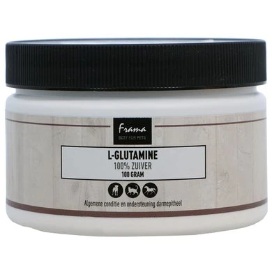 Frama Best for Pets L-Glutamine is van zuivere kwaliteit en is “human-grade”. Zeer breed inzetbaar voor hond, kat en paard. L-Glutamine is het meest voorkomende aminozuur met veel positieve toepassingen. L-Glutamine is een perfecte aanvulling/combinatie met de Probiotica Plus capsules. Het ondersteunt de darmslijmvliezen, het bloed, de weerstand en de spierfunctie. Hierdoor is L-Glutamine naast dat het inzetbaar is ter ondersteuning voor gezonde darmen ook zeer goed inzetbaar ter ondersteuning van de spieren bij intensieve training. Ook inzetbaar ter vermindering van spierverlies tijdens stress, ziekte of operatie. Dit aminozuur is semi-essentieel, dit betekent dat het door het lichaam zelf aangemaakt wordt, echter het kan voorkomen dat het lichaam niet voldoende voldoet aan de behoefte, hierdoor kan het van belang zijn om L-Glutamine bij te voeren.