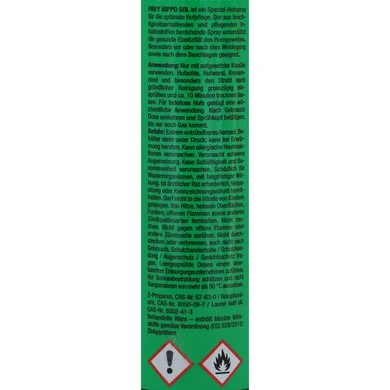 Hipposol is een speciale spray voor een optimale hoefverzorging o.a. bij rotstraal. De vochtregulerende en verzorgende ingrediënten ondersteunen een gezonde elasticiteit van de hoefhoorn. Speciaal aanbrengen na beslag en voor of na weidegang. Spray is ook geschikt ter behandeling van aantasting van de hoef en rotstraal.