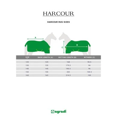 De platte band met pied-de-poule en het geborduurde Harcour in zilver aan de linkerkant geven een zeer chique uitstraling aan de paardendeken.