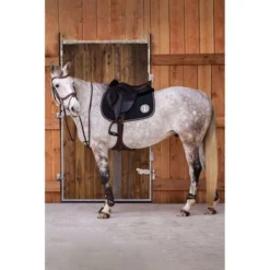 Dit zadeldek is gemaakt van polykatoen. De wafelkatoenen voering zorgt voor een betere absorptie en een optimaal ademend vermogen. De honingraatvormige vulling past zich aan alle paardenmorfologieën aan. Hij is slank en elegant en geschikt voor zowel intensieve trainingssessies als voor recreatief rijden. De stevige snit en vorm van het zadeldek zorgen ervoor dat het onder het zadel op zijn plaats blijft en grotendeels loskomt.