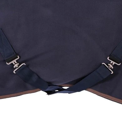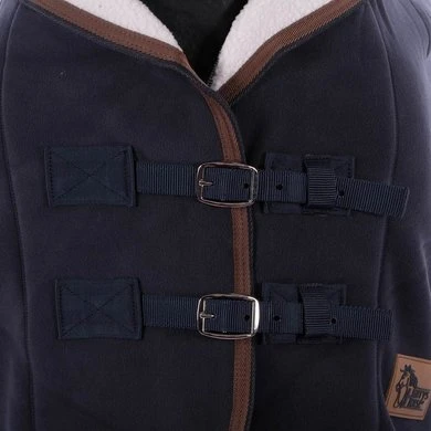 De Harry’s Horse teddyfleece deken heeft een halve hals die teruggeslagen kan worden. De buitenzijde is van fleece en aan de binnenzijde van boa fleece (100% polyester). Een warme deken met een goede zweetopname. De deken is voorzien van een dubbele gespsluiting op de borst, verstelbare vaste kruissingels en van afneembare en deels elastische bilriemen. Verkrijgbaar in het blauw en in het bruin.