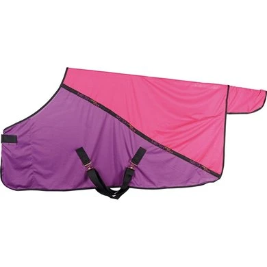 Two-tone mesh deken te gebruiken als vliegendeken of coolerdeken. Met een enkele klittenband voorsluiting, twee kruissingels en staartlus. De borst is met glad polyester gevoerd om kale plekken te voorkomen. 100% polyester.