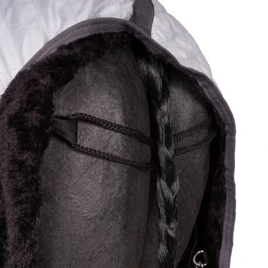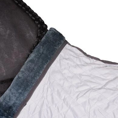 De binnenzijde is ingelegd met artificieel konijnenvel voor een ultra zacht gevoel tegen de huid en om schuurplekken op borst of schouders te voorkomen. Ideale deken voor op transport en tijdens evenement.