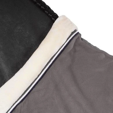 Luxe 400 grams fleece showdeken met teddy bont kraag en borstflap, kruissingels en 2 koorden.