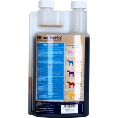 Easy Mare Gold: precies hetzelfde als Hilton Herb’s Easy Mare droge kruidenmix maar dan in een krachtige menging van vloeibare kruidentincturen. Zeker onze bestseller! Wanneer je merrie problemen heeft voorafgaand aan of tijdens haar cyclus kan Easy Mare haar ondersteunen. Wanneer je ruin zich ‘opgefokt’ gedraagt of je hengst tijdens training of wedstrijd niet op jou let met merries in de buurt kan Easy Mare ondersteunen.