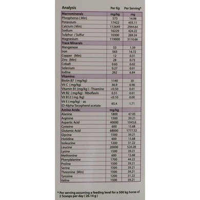 Een 4 kg verpakking is voor een paard van gemiddelde grootte voldoende voor ongeveer 4 maanden, uitgaande van de aanbevolen dosering van 2 maatschepjes van 15 ml per dag.