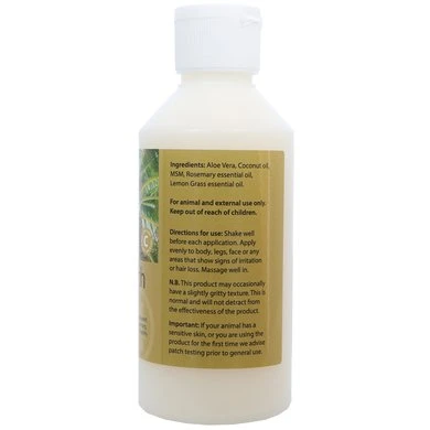 Kokosolie, Aloë Vera, MSM, Rozemarijn etherische olie, Citroengras essentiële olie.