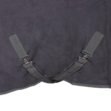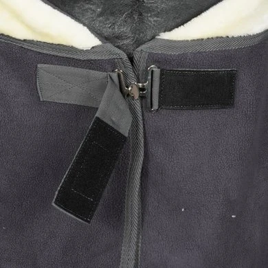 Luxe fleecedeken met extra brede kraag van imitatiebont. Deze deken beschikt over een verstelbare enkele gesp sluiting aan de voorkant, gekruiste buiksingels en een afneembaar staartkoord.