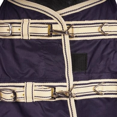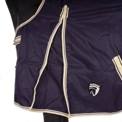 De Horka outdoor deken high neck is 0g en gemaakt van 600D ripstop polyester aan de buitenkant. De deken is 3000mm waterdicht en ademend tot 3000mvp. De binnenvoering is van polyester. De deken heeft een dubbele clipsluiting op de borst met gespen en karabijnhaken, kruissingels onder de buik met rubber stops, afneembare bilriemen en een wijde staartflap. Daarnaast heeft de deken een hoge hals en extra lange en wijde loopsplitten voor een betere bewegingsvrijheid.