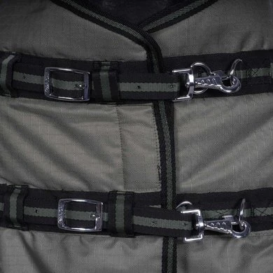 Deze Horka outdoor deken Dime 600D is te combineren met een losse hals. De deken heeft een 200 grams vulling en een polyester voering. Op de borst zit een dubbele verstelbare sluiting, de kruissingels hebben een elastisch uiteinde en rubber stops. De schoft is bont gevoerd en hier zitten ringen, waaraan de hals door middel van klittenband kan worden bevestigd.
