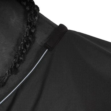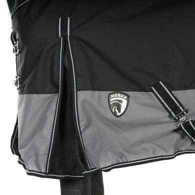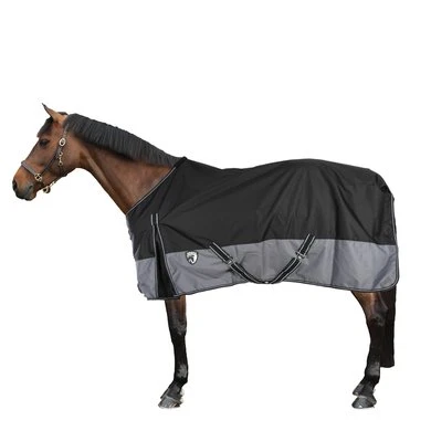 De Horka zomer regendeken Two Tone is 0g deken met katoenen binnenvoering en gemaakt van 600D ripstop polyester aan de buitenkant. De deken is 3000mm waterdicht en ademend tot 3000mvp. De deken heeft een dubbele haak/oog sluiting op de borst, kruissingels met elastisch uiteinde en rubber stops, afneembare elastische bilriemen en een ruime staartflap. Daarnaast heeft de deken een nylon gevoerde borstdeel, een schoftbondje en hoge loopsplitten voor extra bewegingsvrijheid.