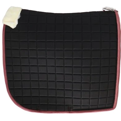 Chique dressuur zadeldekje met een fijne pasvorm. Het zadeldek beschikt over subtiel contrast gekleurde biezen met kristallen en parels voor een luxe uitstraling.