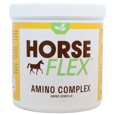 Een poedermix met onder andere 3 essentiële aminozuren: Lysine, Methionine en Threonine. Deze belangrijke aminozuren dragen bij aan de productie van eiwitten en vormen de basis voor sterke en gezonde spieren en andere weefsels in het lichaam van het paard. Daarnaast ondersteunt het de algehele spiergroei, het behoud van een gezonde spierstofwisseling en draagt het bij aan sterk en elastisch bindweefsel. HorseFlex Amino Complex is hierdoor zeer geschikt voor paarden in training en jonge paarden in de groei.