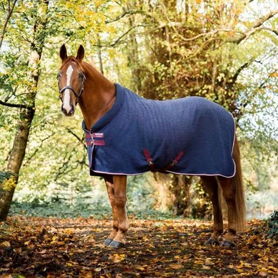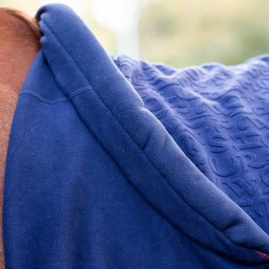 Our cosiest fleece in an elegant, luxurious design with a padded fleece collar. The double bonded fleece effectively wicks moisture away, keeping your horse warm and allowing for gradual cooling. Features are straight front closures, 2 crossed surcingle’s, fillet string. Embossed Horseware Logo. Suitable for use in the stable or travelling.