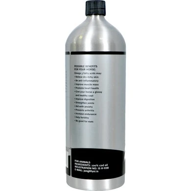 Icelandpet Cod Oil voor paarden is verkrijgbaar in 1000 ml in een aluminium fles met draaidop. De olie blijft goed bewaard doordat er geen licht door de fles komt. Bewaar de fles op ‘kamertemperatuur’ maar uit de zon. Ideaal dus voor op stal.