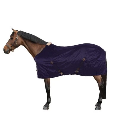 Het staldeken heeft een vulling van 0g en de binnenzijde is gevoerd met artificieel konijnenvacht voor een ultra zacht gevoel en voorkomt dat er haartjes in de voering blijven zitten. Dankzij deze voering zijn schuurplekken op de borst of schouders verleden tijd. De artificiële konijnenvacht (100% diervriendelijk) maakt kleine luchtzakjes aan die de lichaamswarmte van het paard gaat opvangen en behouden. De zachte haartjes van de artificiële konijnenvacht zorgt voor een betere glans van de paardenvacht. Dankzij de hoge warmte-tot-gewicht ratio biedt dit deken een maximaal comfort. Ook de artificiële wol ter hoogte van de schoft zorgt voor een aangenaam gevoel en vermijdt schuurplekken. Het wafelmotief aan de buitenzijde zorgt ervoor dat de paarden het deken zeer moeilijk kunnen stukbijten. De buitenstof is gemaakt van 600D high tenacity polyester. Vooraan wordt het deken gesloten door middel van 2 simpele verstelbare borstsluitingen die zorgvuldig met imitatieleder werden afgewerkt. De twee kruissingels zijneveneens verstelbaar en met leder afgewerkt. De bilsluiting bestaat uit een dikke elastiek met een plastic omhulsel waardoor deze zeer gemakkelijk af te wassen is. Aan beide zijden werd een gesp geplaatst waardoor men de bilsluiting vlot kan afnemen. Wasbaar in de machine op 30°, geen droger.