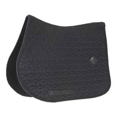 De buitenkant van de zadeldoek is gemaakt van een katoenachtig polyester in kubus quilting. Aan de linkerkant van de zadeldoek is een kleine vegan lederen patch met het Kentucky logo, onder het logo is genoeg plek gelaten om iets te borduren. De voering van het dekje is een vocht afvoerende katoen-polyester mix.